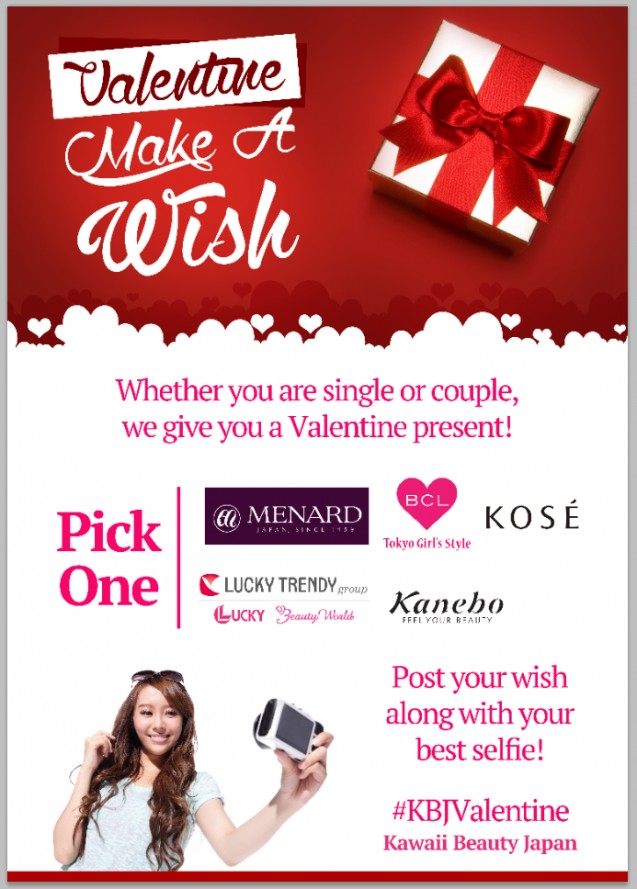 Kawaii Beauty Japan juga mengadakan #KBJValentine Make A Wish untuk kamu datang ke booth KBJ dan berfoto di photo booth yang tersedia! Ada 5 hadiah Valentine untuk kamu yang mendapatkan likes terbanyak di Instagram dan Twitter.
